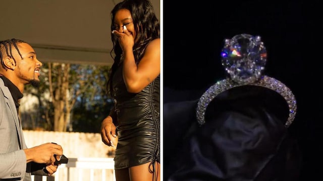 NFL star Jonathan Owens asked Olympic gymnast Simone Biles to marry him on Valentine’s Day, presenting an oval-cut diamond ring encrusted with a circle of petite diamonds. The ring, crafted by jeweler Zo Frost, features a 3-carat central diamond, hand-selected by Owens, and mounted on a pavé diamond band. It’s estimated to be worth $300,000.